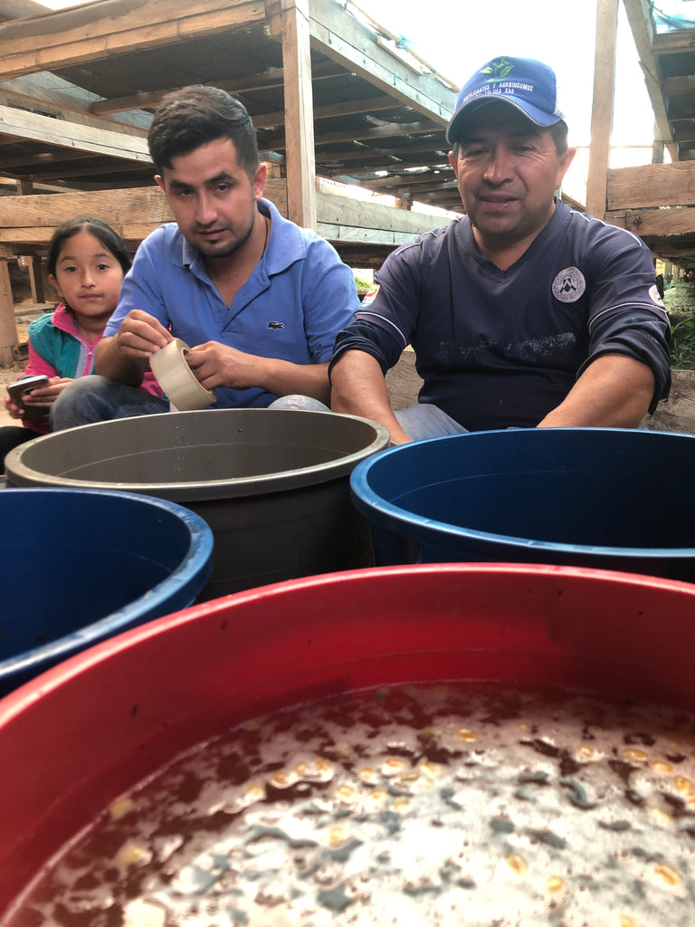 The coffee is depulped the next morning and dry ferments for an average of 22 hours in oak tanks. It’s rinsed four times and then left to drain in plastic bags for 8 hours. The coffee is dried for 15 days in shade, and then moved to the upper level of the beneficio where it finds more sun and is dried for another 5 days.